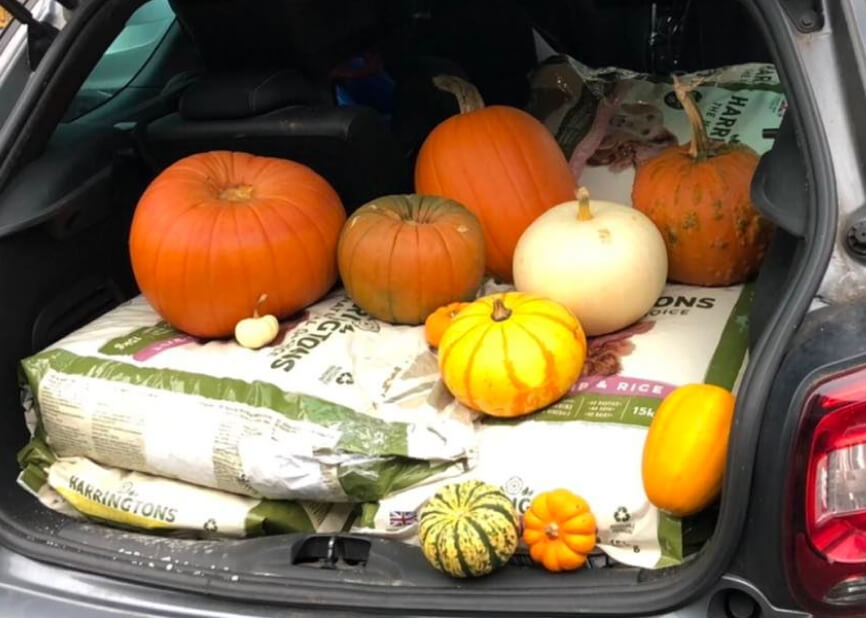 We collected over 350 pumpkins across Northamptonshire and delivered them to our local rescues. Last delivery was on November 20th.